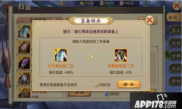 继承功能完美了解决了这个难题,低级装备往同级或高级装备继承。灵气再也不用担心浪费了,放心强化吧!