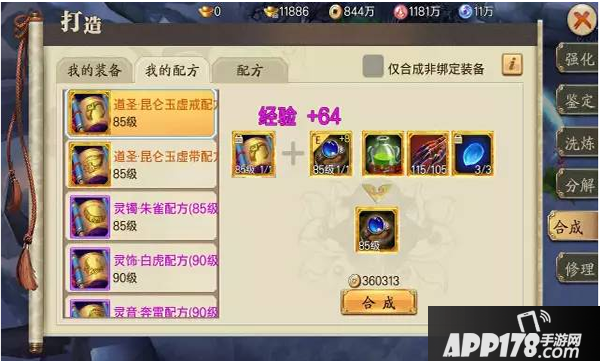 蜀山前期升级较快,个人建议80级前无需合成橙色装备,合成紫装就够用。