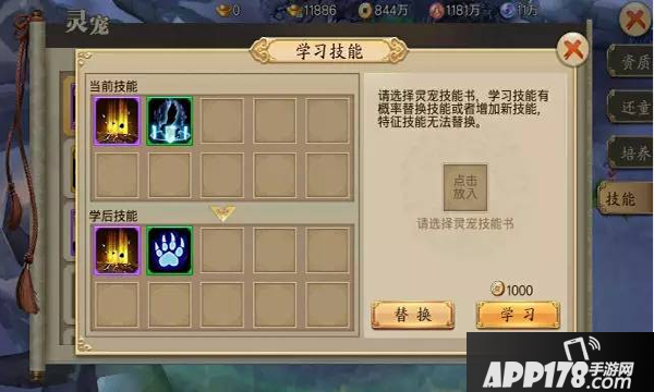 技能书可以去商城购买高级技能书礼包开,也可以用空白技能书去其他宠物身上摘。