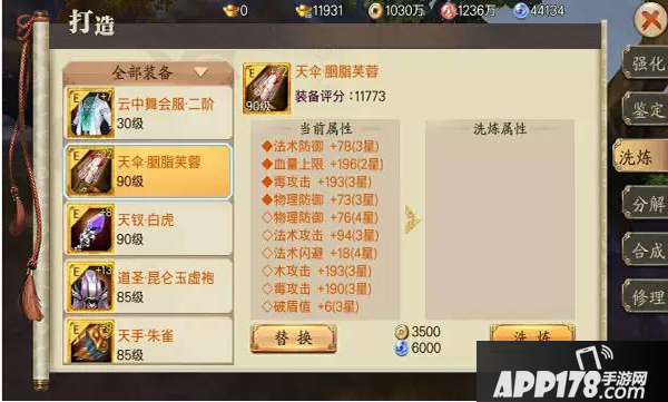 洗练可以改变装备的附加属性及数值,每次需要花费相对应的灵气和铜钱。
