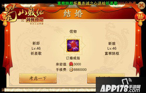 本次版本更新中,各位剑仙最期待的应该就是结婚系统了。仙侠姻缘一线牵,想要结婚并不难,只要夫妻双方属于同阵营、等级达到45级、亲密度达到3000并持有信物“同心结”就可以到NPC月老处登记结婚了。结婚收益多多,专属技能、经验BUFF、夫妻称号与专属副本皆可收入囊中。参与游街、抛绣球,围观群众可获得大量经验;参加喜宴,亲朋好友可以见证二位新人的幸福时光。另外,系统将赠送结婚时装,心动不如马上行动,领证就来蜀山民政局!