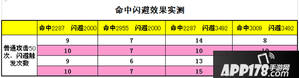 在这几组数字不同组合下,各采用普通攻击50下,闪避触发的次数见下表