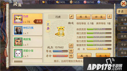 同时,宠物成长同样会影响宠物的最终属性,成长越高随着宠物等级越高所增加的属性更加恐怖,所以培养宠物尽量要做到资质与成长兼得。
