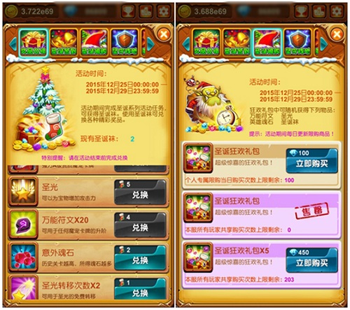 如果说以上福利还不能令你动心的话,那就来一次任性的惊喜限购吧!游戏内不定期推出惊喜限购活动,金币、魂石、圣光、各种增益buff??????一切你想要的稀有资源在这里都会随机出现,如有想要千万别犹豫,马上扫货入袋吧!