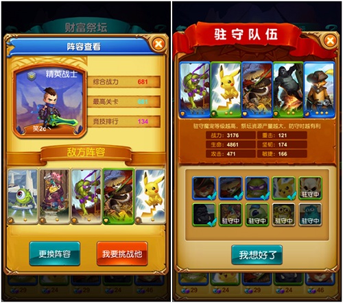 每个祭坛最多可以驻守五个魔宠,魔宠的品质越高产出的资源也就越多。如果有别人来抢夺你的资源那么就需要驻守的魔宠来守卫祭坛了。如果外出抢夺,那么就可以随意组合魔宠去进攻敌人,抢夺的资源可以用来升级自己的祭坛。