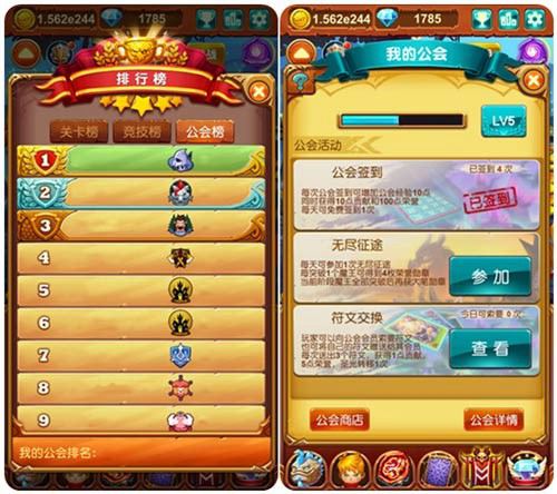 公会等级是决定工会战的重要因素之一,在公会系统中,成员可通过签到提升公会经验渐而升级公会,需要公会成员齐心协力才行。等级的提升会增加公会人数上线,工会战人数是重点,整个工会战的系统中不会让某个玩家过于强大,人海战术也是一种策略。