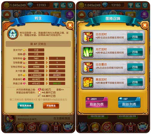 天降神秘石头,助力勇者战魔王!游戏中有两种“疯狂的石头”,英雄魂石和绿宝石。英雄魂石转生变成英雄之魂后可用于提升勇者战力或召唤升级图腾,前期切记不 要用英雄之魂召唤图腾,避免战力过低惨被虐的局面出现。在后期英雄之魂战力加成不在那么明显时可适当用于召唤和升级图腾。