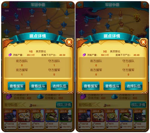 英灵祭坛是灵能的“制造厂”,是公会战奖励英灵的重要来源,根据每整点时刻的灵能产量分为3个级别,对战时切记查看据点详情,在兵力有限的情况下抢夺或守护 高产量据点会有事半功倍的效果,毕竟最高产与最低产祭坛间灵能产量相差2倍有余,可召唤小伙伴一起制定抢夺路线,增加公会战最终收益,尽快召唤神级魔宠。