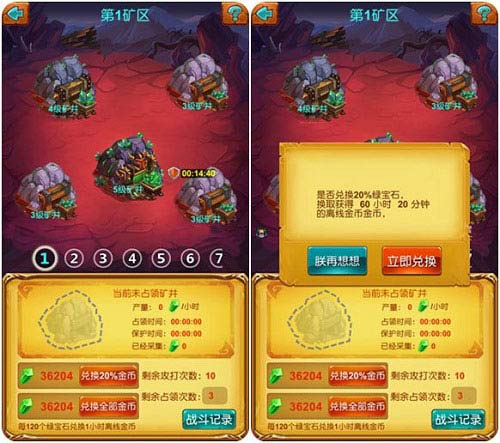 活动期间,在淘金矿区占领金矿所产出和收获的绿宝石为双倍。老司机都知道,绿宝石是勇者突破关卡瓶颈的保障,比例兑换机制的设定,更是将绿宝石的作用发挥到极致,而且不受转生影响。产出翻倍将大大加快勇者们的积攒速度,千万别错过了哦!