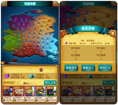 防守很大程度上是为了守护资源据点的安全产出,但战功才是你最终收获资源的依据,而在军团争霸中,战斗无论胜负都将收获相应战功,赶紧将那些远离战场的魔宠战队投入其中吧,为方便操作,可召唤所有战队在某一据点集合后统一行动。