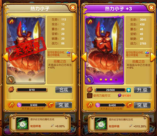 A 级魔宠 “热力小子” ,属于输出类魔宠,属性相对平均。技能 “恶魔之血” 可增加己方15%的攻击!只要它上阵,我方阵容内所有伙伴都带有攻击加成!可能相对其他A级输出的魔宠来说,热力小子的技能加成略显偏低,但它贵在稳定。 只要上场就有加成的优势,这对于喜好综合能力平均的勇者来说,有这么个小家伙儿陪伴,倒是个不错的选择!