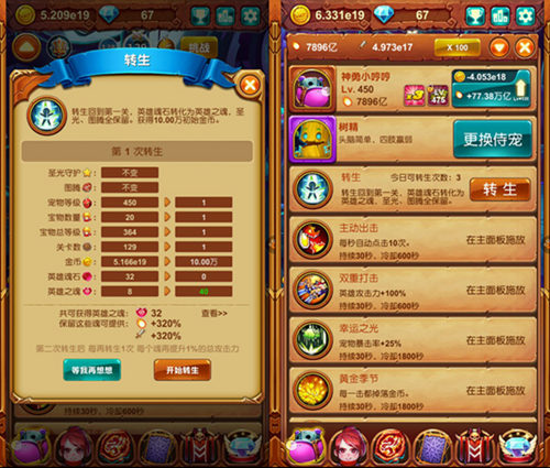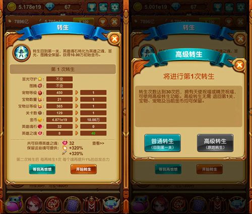 你以为这样就完了?不,我来告诉你,高级转生,不仅仅可以一键完成,不用苦苦等待。在转生时,勇者、宝物以及宠物的等级也通通不会归零,就连力量源泉也都是不会归零的,再也不用眼睁睁看着自己辛辛苦苦积攒的力量源泉变成英雄之魂,这可是为大家又省时间又省资源啊~