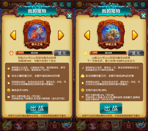 三只龙宠各有千秋,有适合赚钱的,适合省钱的也有适合战斗的。这其中的乐趣就需要各位勇者亲自体验啦!当然随着更新我们的“破风之鹰”与“避水之鱼”也可以通过进化成为龙宠哟!并且进化后的它们一样不逊色与以上三位龙宠,大家依旧可以使用!