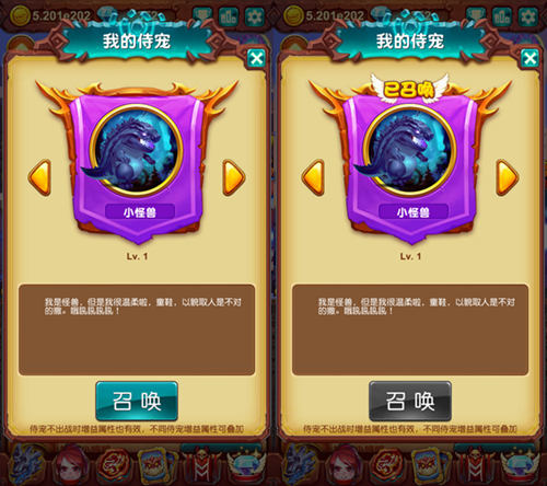 并且游戏中的小怪兽不仅仅是魔宠阵容中的一员,它同时化身为萌哒哒侍宠伙伴一直跟随在勇者身边!凶残的外表缩小后,变得异常的呆萌,正所谓每一个外表凶残的怪兽内心中都会有那么一律萌态,侍宠状态的小怪兽就充分表明了这个事实!笨重的步伐配合厚实的身躯,瞬间捕获众勇者的心!
