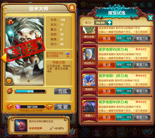 选择好自己想要培养的魔宠后,就可以通过魔宠试炼来为我们的魔宠伙伴进行资质的提升。届时大家需要通过相应的试炼挑战,才可以获得魔宠碎片。这里需要提示大家,大家通过的挑战难度越高,获得的魔宠碎片越高,所以大家应该优先挑战更高层次的试炼,当无法继续挑战成功时,在进行扫荡,使在当前阶段可以获得的魔宠碎片达到最多!
