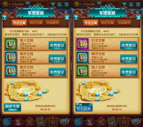 军团宝藏可以给大家带来的最大收获肯定是大量的金钱与宠物进阶材料。每位勇者每天有4次免费解锁宝箱次数以及6次协助解锁次数,也就是说玩家每天可以获得10次奖励。