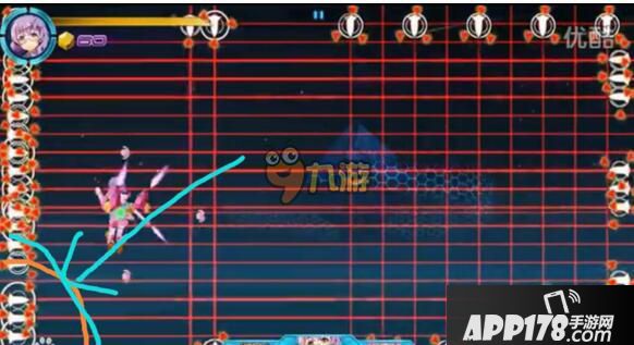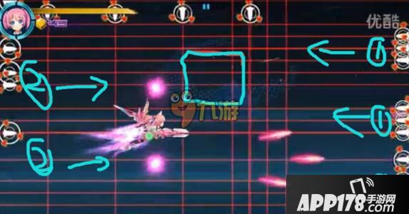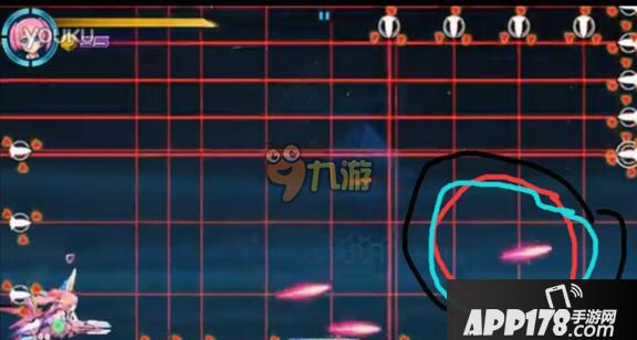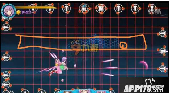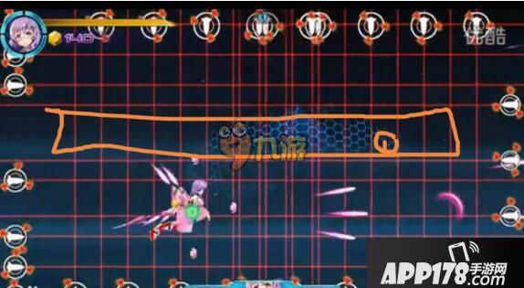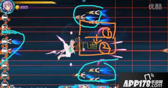 接着第五波,这里要迅速的移动到上下两线中间,注意是接着第五波!尽量不要在中间躲图一图二的上下导弹,为第六波做准备