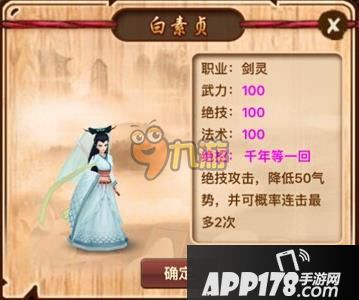 绝招千年等一会,绝技攻击,降低50点气势,并可概率连击最多2次,当然如果玩家获得了该伙伴,第一个可以换掉了自然是楚楚啦,降低气势可以延迟对方释放大招的时间,建议一般放在敌方输出比较高的伙伴对面,有效的克制该伙伴释放大招。