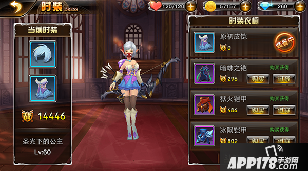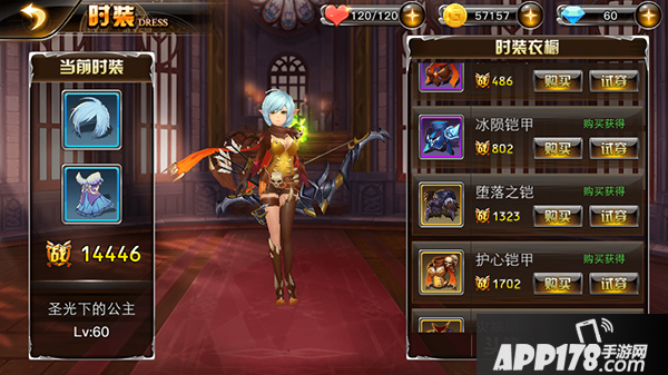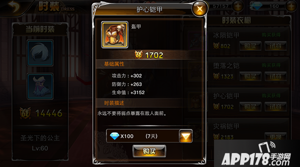 玩家可在背包中的“时装”选项中,查看和购买自己喜欢的时装,当然,时装还可以试穿的哦!