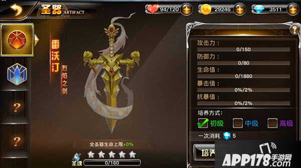 培养圣器,只需要消耗道具“圣器之源”,即可强化圣器属性,增加战力。