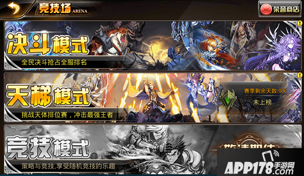 竞技场分为三种模式:决斗模式、天梯模式、竞技模式。