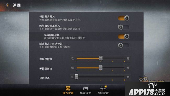 本作的操作方式当然也不会像PC端的《坦克世界》要求那么高,虽然官方还是采用的标准的虚拟摇杆+按键的模式,但是在瞄准方面则非常贴心的提供了“自动瞄准”的功能,玩家只需要在行进的时候合理调整你炮台的朝向,然后准心就会自动搜寻视线中的敌人,等准心框住敌人的时候按下攻击就能完成攻击,这一系统使得本作的节奏在很多时候要比PC端快很多,战斗的爽快感和激烈程度也有增无减。同时碰到大规模敌人,还可以提供空中支援,呼叫友军飞机帮你轰炸。