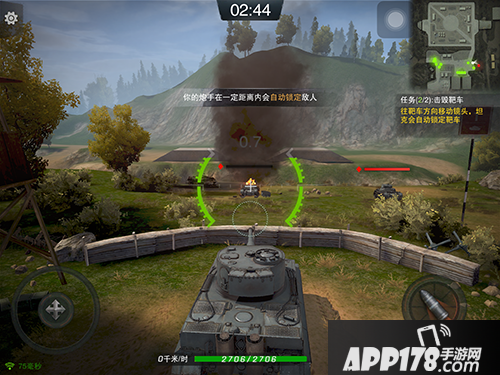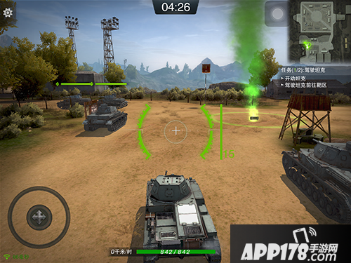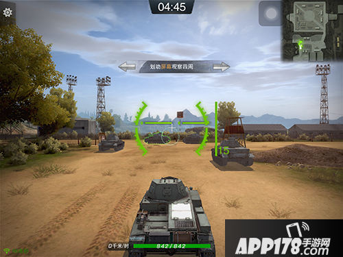 最开始的就是移动视角和位置移动,不过由于坦克本身的移动方式和我们日常玩的其他游戏角色不同,在适应上是需要时间的,特别是在转弯的时候,将摇杆往左或者往右摇分别是坦克原地逆时针和顺时针的旋转。