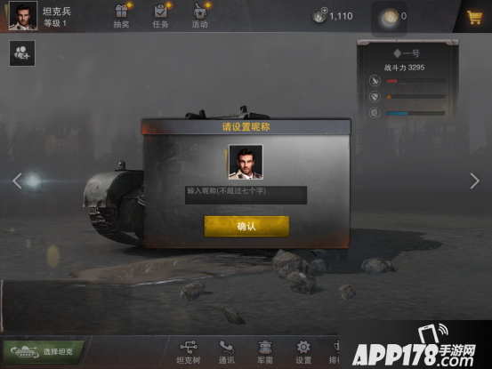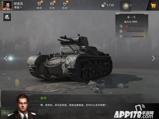 下面我们的游戏就算正式开始了。最开始的当然就是我们在游戏中最重要的伙伴,一号坦克,这款轻型坦克将会是我们在前面几个关卡所使用的坦克之一。对了,在进入教学任务之前可别忘了起一个好听的名字。