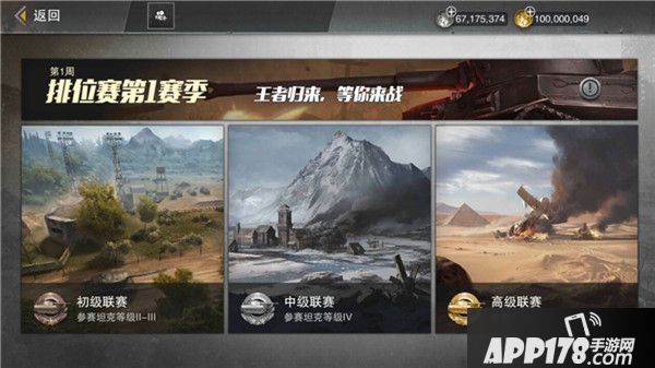 “排位赛”则细分为初级联赛、中级联赛和高级联赛,不同级别的联赛对于坦克的等级有不同的要求。在联赛中,你必须全神贯注,因为每一场战斗都将影响到你的军衔和最终的排名,不仅与你能获得的奖励直接成正比,代表着你操纵坦克战斗的实力,更可能影响到其他人对你驾驶的坦克的评价!