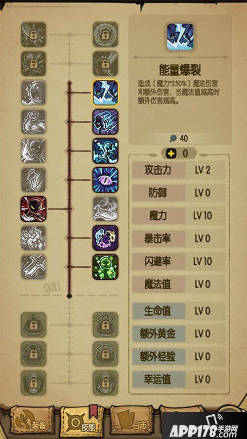 “能量爆裂”,造成(魔力*250%)魔法伤害和额外伤害,当魔法值越高时额外伤害越高。魔力10000时,魔法伤害为25000,根据魔法值的高低,还有相应的的额外伤害。