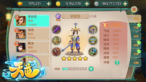 玩过《天道》的小伙伴对天子玩法一定不陌生,不管是主线任务,还是副本刷怪,都离不开天子的助力。天子承天命而掌人间,一切妖魔在他的面前都必将现出原型。玩家通过碎片兑换和寻宝中获得,天子能力随星级增高而提升,每次可出战三位天子,足以睥睨四方,战无不胜!
