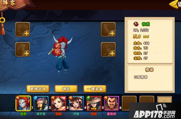 在阵容界面中点击想要装备的武将头像进入属性界面。