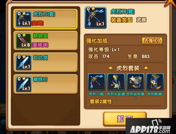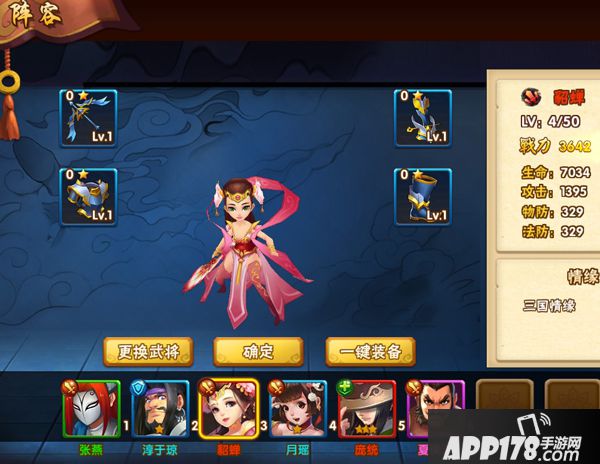 点击“一键装备”按钮 ,自动匹配该武将合适的装备。