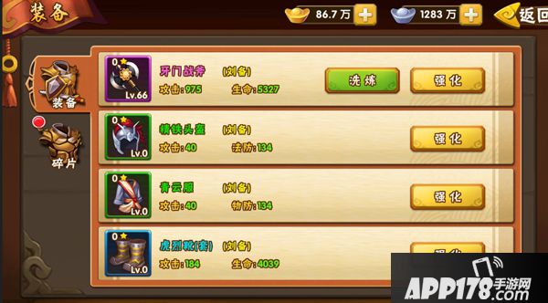 强化提升装备等级;从而提升装备属性中的攻击和生命