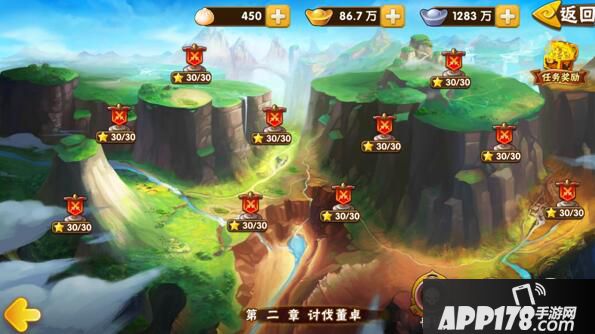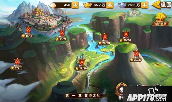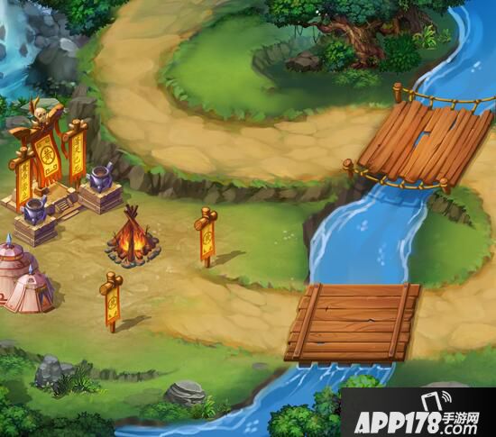 战斗场景布局都经过精心设计,力求关卡路线具备美感和战斗乐趣,路线符合黄巾比例。周边元素也带有三国特点,例如 第一章黄巾之乱中,地图上有黄巾营地。