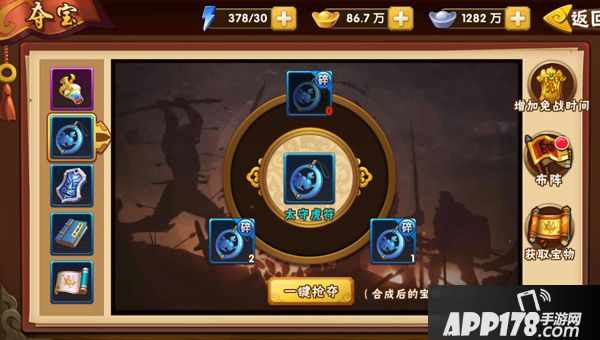 玩家点击主界面中的“夺宝”图标,进入夺宝面板。
