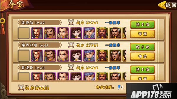 点击“夺宝”按钮或“抢5次”按钮,进入战斗。