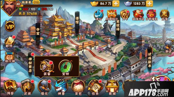 玩家点击主界面中的宝物图标,进入宝物系统。