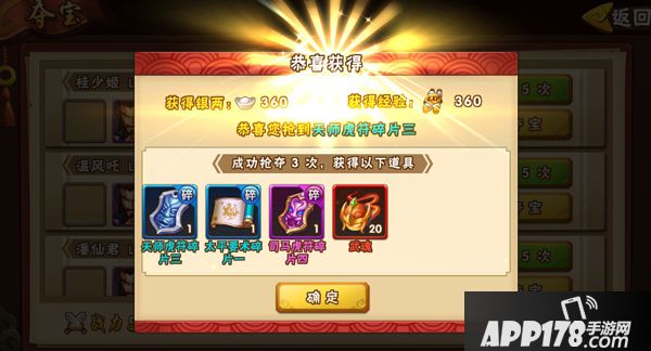 添加多余的宝物。经验道具会提升当前宝物等级。