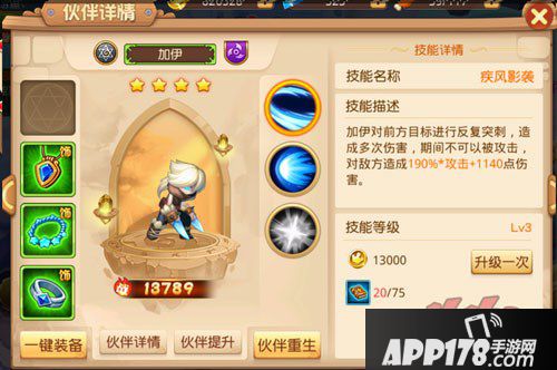 其次是伙伴提升,每个玩家在刚开始系统都会赠送式的给玩家几个小伙伴,这些伙伴都是比较容易得到的,玩家可以通过十连抽抽取一些星级比较高的伙伴,算下来还是挺划算的,接着就是帮伙伴提升了。提升伙伴可以从很多方面去提升,如:装备、技能、等级、阶级;