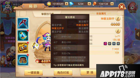 装备包括强化、升星和镶嵌宝石外,还有套装效果和时装加成。玩家升级之后,装备可以强化,强化等级上限为玩家等级的2倍(强化暴击可以超过玩家等级哦);装备通过升星进阶可以开启宝石槽,最多能有4个宝石槽。