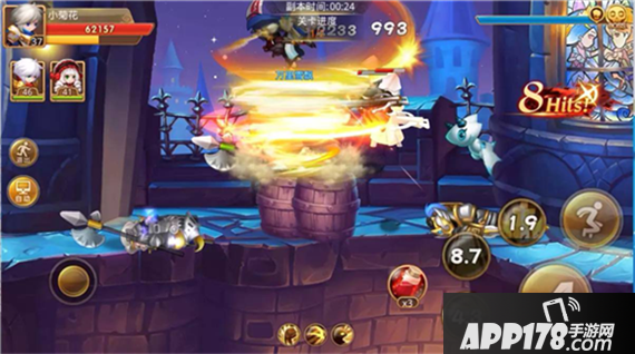在童话世界中冒险的时候,遇到了难以逾越的障碍该如何是好?有时候你只要在跳跃到空中时,再点击一下跳跃键,使用“二段跳”就可以让自己跳得更高!除了使用跳跃键翻越障碍之外,在一些空隙比较小的平台上,如果你难以控制好跳跃力道,很容易一头栽下悬崖,那么不妨尝试一下自己的某些技能,比如圣剑士的疾风突袭技能,就能让你瞬移一段距离,让你轻松跨越某些陷阱。