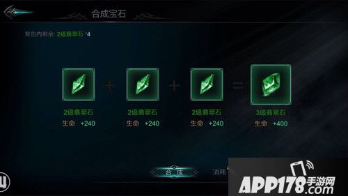 在背包里找到宝石,点击合成,会出现合成宝石界面,三个低级宝石可以合成一个高级宝石。