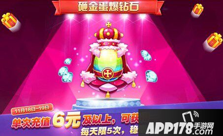 活动内容:在活动期间,游戏内单笔充值满60钻,可获得1次砸蛋机会,多充多送,每日最多可获得5次砸蛋机会,大量钻石壕礼等你砸出来!
