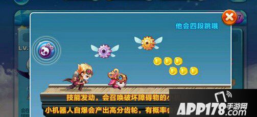 机械小子发动技能,会召唤破坏障碍物的小机器人。小机器人自爆会产出高分齿轮,有概率会产出特殊齿轮,吃到特殊齿轮还能巨化。