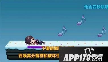 下滑时能蓄力唱歌召唤高分音符和破坏性大音符帮你清除障碍。
