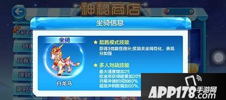 这里我们可参考任务是埃及艳后,埃及艳后的技能效果非常丰富,复活上面可以增加跑图的时间,金甲虫可以提高得分,另外埃及艳后还拥有冲刺的效果,如果你跑的是多人战,那么小编建议你用白龙马,白龙马在多人中一直首居,虽然白龙马后面上了皇家狮鹫夜龙马等热门奖池坐骑,但是小编认为在多人中白龙马的手感更好,跑分时间更短。