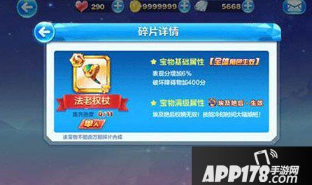 宝物基础属性表现分增加6%,破坏障碍物加400分,宝物满级以后,埃及艳后权杖无双,技能冷却时间大幅缩短。