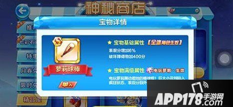 一般专属宝物在使用范围很有针对性,这类我们忽略宝物的基础属性,因为基础属性基本上都一样,多数宝物都是可代替的,而专属宝物的满级属性则是仅仅对指定角色开放,萝莉球棒属性为: