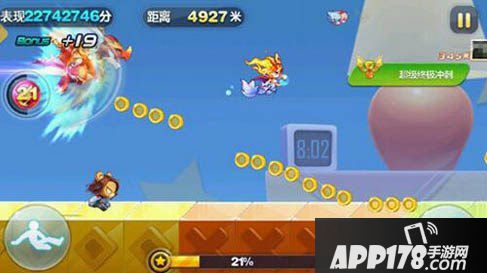 唐小僧在开局时不买能量药剂,开局滑翔不松使用技能冲刺。每次穿过火圈,速度都能瞬时提升300左右,同时无敌,炎龙战神身上的效果时消失无敌消失速度回落。踩加速带后,即使非龙马坐骑也能跑的更快。